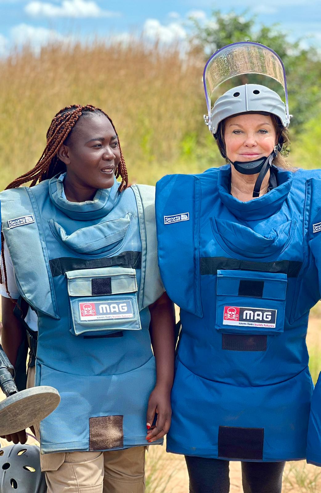 Mrs Kuhn, who spent two days with MAG’s deminers in Moxico province, Angola, founded Roots of Peace from her Marin County, California, home nearly 27 years ago, driven by a vision to transform mines to vines —replacing deadly landmines with life-giving vineyards and orchards.