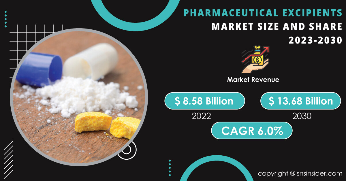 AUSTIN, TEXAS, UNITED STATES, March 8, 2024 /EINPresswire.com/ -- The Global Pharmaceutical Excipients Market is expected to reach 13.68 billion by 2030, reflecting a compound annual growth rate (CAGR) of 6% from its estimated value of USD 8.58 billion in 2022.The Pharmaceutical Excipients Market Report provides a comprehensive analysis of the global pharmaceutical excipients industry, offering insights into market trends, key players, and growth opportunities. The report delves into the various types of excipients used in pharmaceutical formulations, such as binders, fillers, disintegrants, lubricants, and preservatives. It also examines the market segmentation based on type, functionality, and region to provide a detailed understanding of the market landscape. The report further discusses the regulatory environment governing excipient usage in different regions and the impact of these regulations on market dynamics. Additionally, it analyzes the competitive landscape by profiling major players in the industry and assessing their strategies for growth and expansion. Overall, this report serves as a valuable resource for stakeholders looking to navigate the dynamic pharmaceutical excipients market effectively.