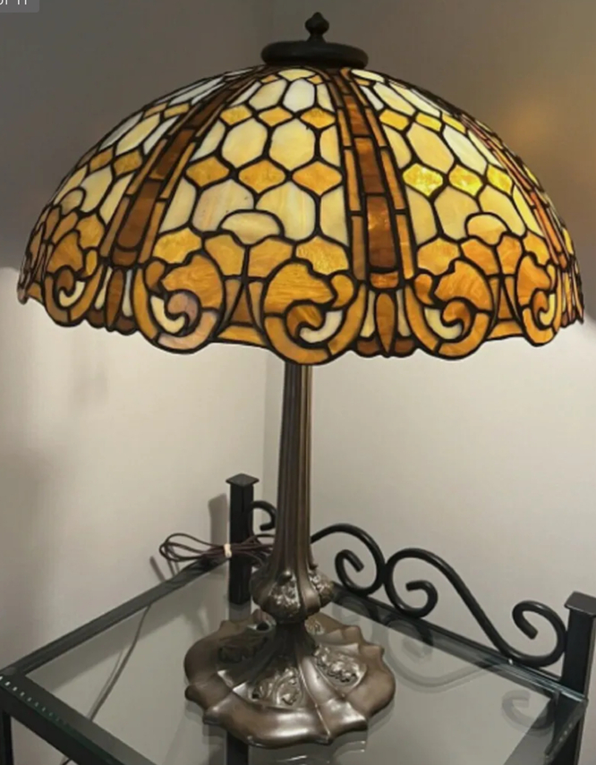 Duffner Kimberly authenticated leaded lamp, 26 inches tall and the outstanding original shade 20 inches in diameter, with original base (est. $3,500-$5,000).