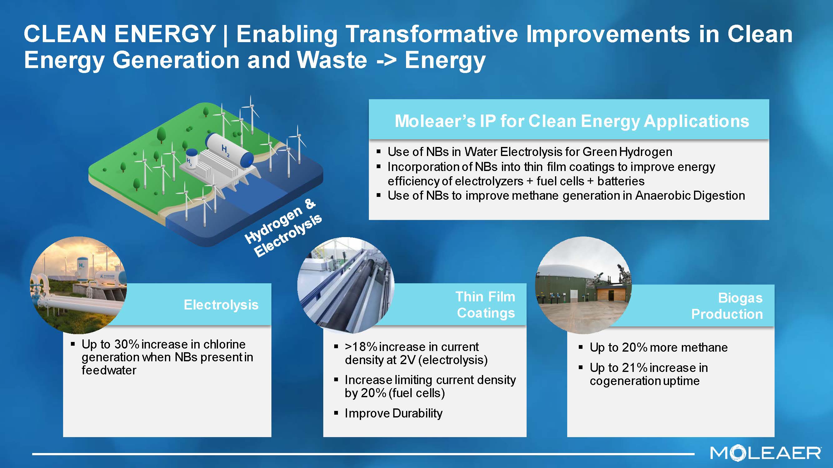 LOS ANGELES, CA, USA, March 11, 2024 /EINPresswire.com/ -- Moleaer, the pioneer and global leader in nanobubble technology, proudly announces the issuance of the first of several patents the Company has filed to apply its proprietary nanobubble technology to electrolytic processes to improve the energy efficiency of hydrogen production. This innovation is applicable to Proton Exchange Membrane (PEM) Electrolysis and Anion Exchange Membrane Electrolysis (AEM), contributing to the production of green hydrogen more cost effectively.