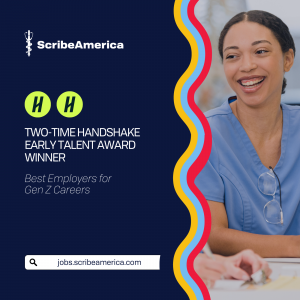 FT. LAUDERDALE, FL, UNITED STATES, March 13, 2024 /EINPresswire.com/ -- ScribeAmerica, the nation's leading provider of medical scribes, is proud to announce it has been named a 2024 Handshake Early Talent Award Winner. This annual award recognizes the best employers for Gen Z employees looking to launch and expand their careers. With the recent recognition, ScribeAmerica is now a two-time Handshake award winner, having also been honored with the award in 2023.Handshake, a leading career community for college students and recent graduates, commended ScribeAmerica for its impactful work in healthcare, exceptional dedication to nurturing careers, and socially responsible practices. As a result, ScribeAmerica stands out as an exemplary employer for the newest generation entering the workforce.
