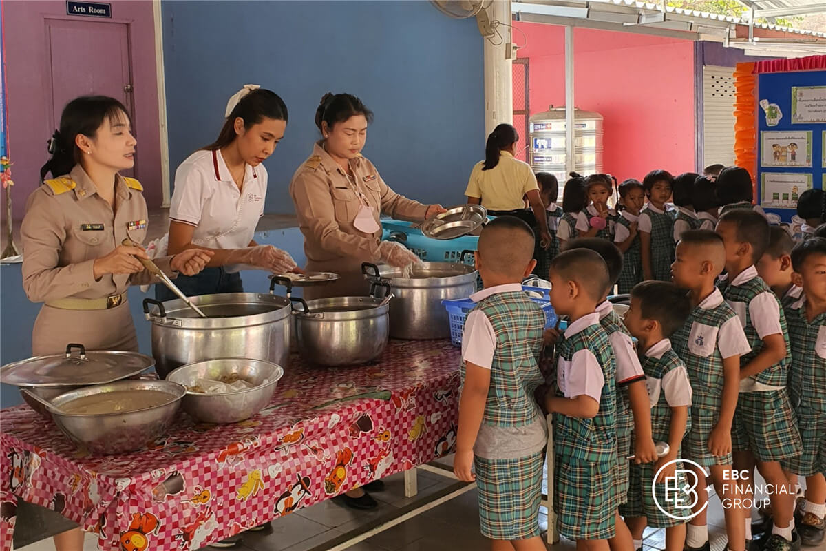 EBC Financial Group extends its corporate social responsibility efforts to Khao Kam Phaeng School, donating essential educational supplies to 357 students.
