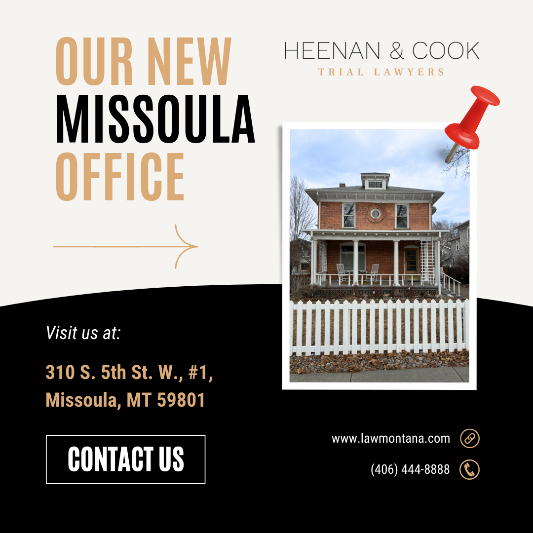 Heenan & Cook, Montana's personal injury law experts, opened a new office in Missoula located at 310 S. 5th St. W., #1. Visit now for a free consultation.