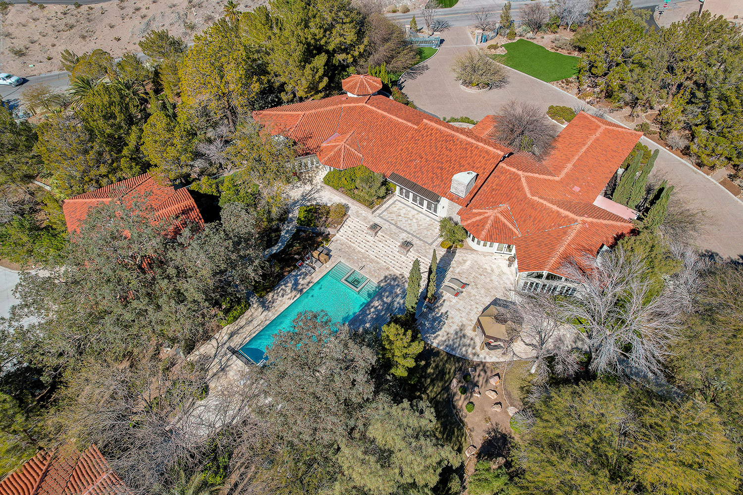 Owned by world renowned author Terry Goodkind, ‘The Goodkind Estate’ is a desert jewel. The two residence retreat on nearly four acres offers a truly private setting with fully fenced, park-like grounds with walking trails, koi pond, and views of the Red and Black Mountain peaks. Entering the main house, natural light from the walls of glass surround the sunken living room with a wood vaulted ceiling, grand stone fireplace, and a regal color palette highlighted by the polished stone flooring. Amenities include a seven-car garage, secure vault, oversized saltwater pool and an equally exquisite attached second property that boasts a large office and living space, which can be used as a studio or guest house.