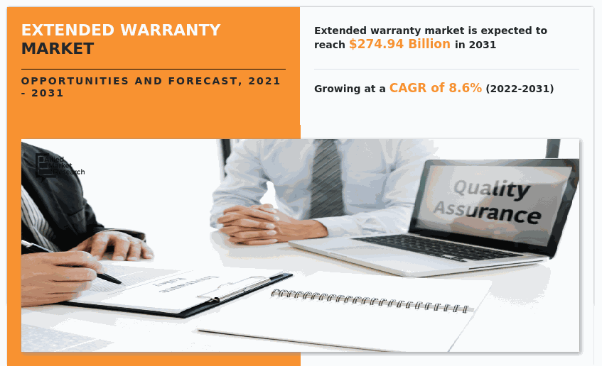 Extended Warranty Market is Expected to Top Nearly $274.94 billion by 2031; growing at a CAGR of 8.6%