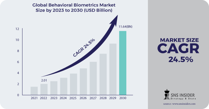 AUSTIN, TEXAS, UNITED STATES, March 18, 2024 /EINPresswire.com/ -- The SNS Insider report reveals that the Behavioral Biometrics Market was valued at USD 2.01 Billion in 2022. It is projected to achieve a market size of USD 11.64 Billion by 2030, with a compound annual growth rate of 24.5% over the forecast period from 2023 to 2030.Market Report Scope