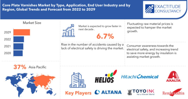 LUTON, BEDFORDSHIRE, UNITED KINGDOM, March 18, 2024 /EINPresswire.com/ -- The Globalย Core Plate Varnishesย ๐๐๐ซ๐ค๐๐ญ report focuses on a comprehensive analysis of the recent and future prospects of the Core Plate Varnishes industry. An in-depth analysis of ๐ก๐ข๐ฌ๐ญ๐จ๐ซ๐ข๐๐๐ฅ ๐ญ๐ซ๐๐ง๐๐ฌ, ๐๐ฎ๐ญ๐ฎ๐ซ๐ ๐ญ๐ซ๐๐ง๐๐ฌ, ๐ข๐ง๐๐ฎ๐ฌ๐ญ๐ซ๐ฒ ๐๐๐ฏ๐๐ง๐๐๐ฆ๐๐ง๐ญ๐ฌ, and regulatory requirements of the Core Plate Varnishes has been conducted to analyze the growth rate of each segment and sub-segment. Highlighting the major drivers and restraints in this industry, the report also provides a complete study of future trends and improvements in the market. It also examines the role of the leading market players involved in the industry including their corporate overview, financial summary and SWOT analysis. Exactitude Consultancy ensures qualified and verifiable features of market data operating in the real- time scenario. The analytical studies are conducted ensuring client needs with a thorough understanding of market dimensions in the current scenario.
