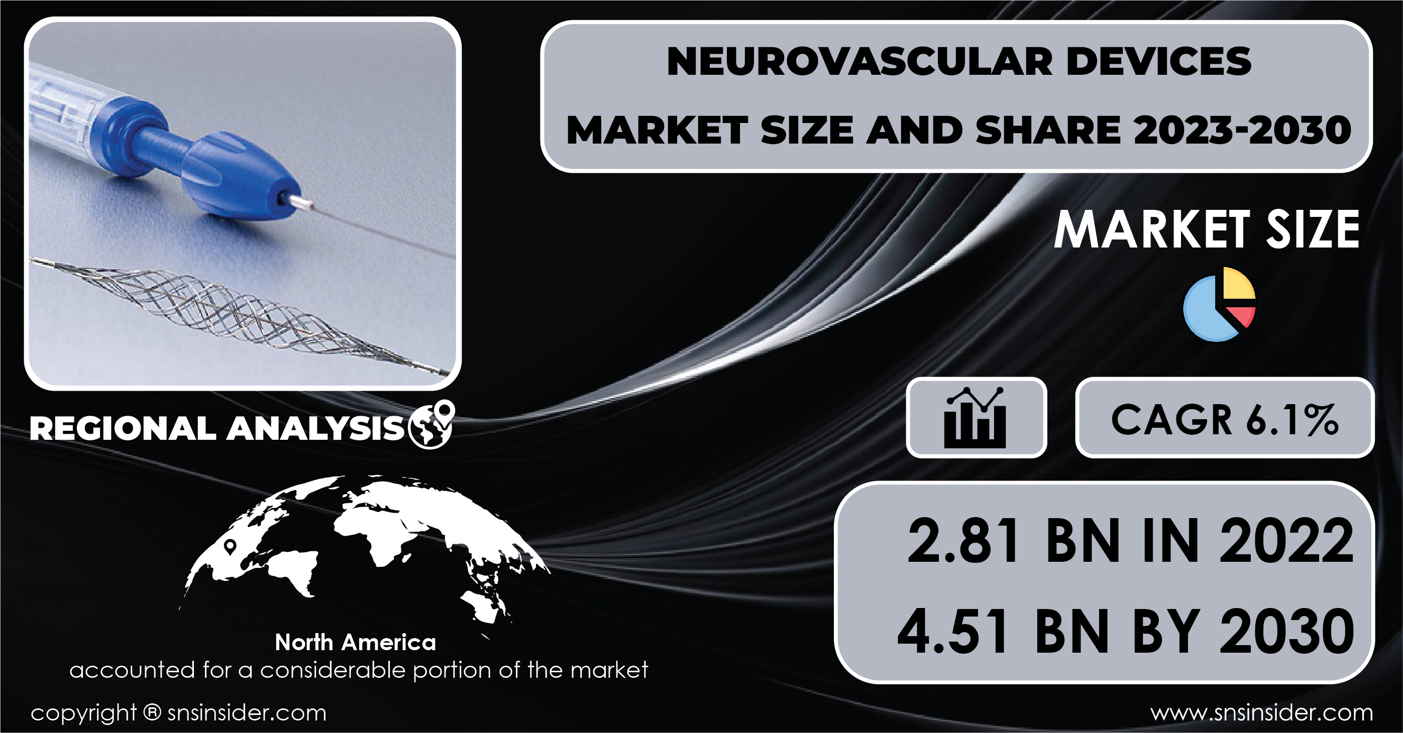 AUSTIN, TEXAS, UNITED STATES, March 19, 2024 /EINPresswire.com/ -- According to SNS Insider, the Global Neurovascular Devices Market was valued at $2.81 billion in 2022 and is projected to reach $4.51 billion by 2030, growing at a CAGR of 6.1% during the forecast period.The Neurovascular Devices Market Report provides a comprehensive analysis of the current market trends, growth drivers, challenges, and opportunities in the neurovascular devices industry. The report also includes insights into key market players, their product portfolios, recent developments, and strategies for market expansion. Additionally, it highlights the regulatory landscape governing neurovascular devices and the impact of technological advancements on market growth.