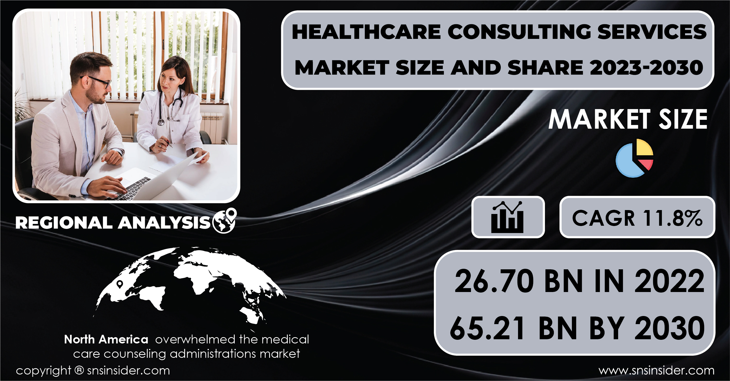 AUSTIN, TEXAS, UNITED STATES, March 19, 2024 /EINPresswire.com/ -- According to SNS Insider, the Global Healthcare Consulting Services Market was valued at $26.70 billion in 2022 and is projected to reach $65.21 billion by 2030, growing at a CAGR of 11.8% during the forecast period.The healthcare consulting services market report provides a comprehensive analysis of the current trends, growth, size, share, challenges, and opportunities in the industry. The report also examines the competitive landscape, regulatory framework, and market dynamics shaping the future of healthcare consulting services.