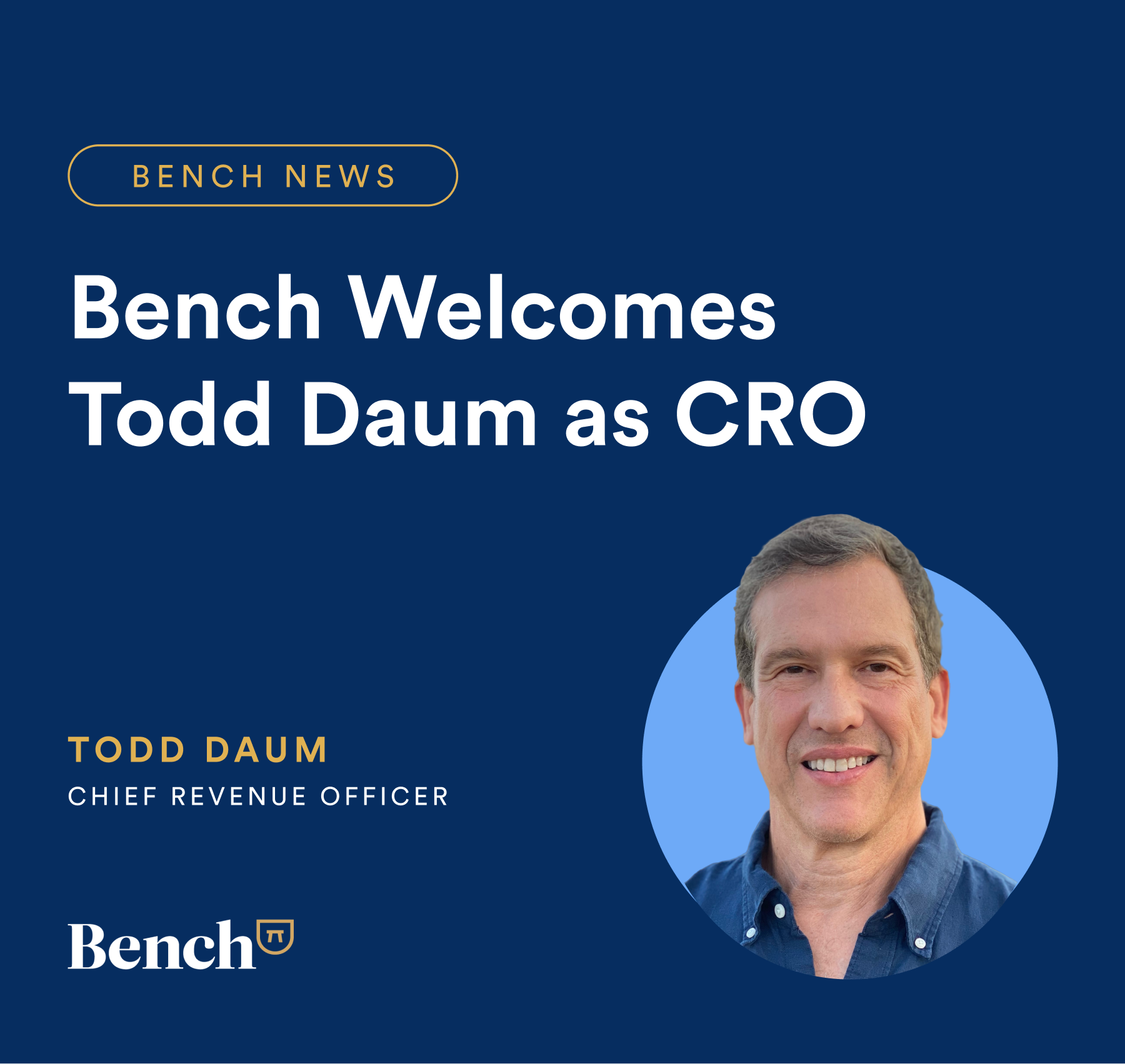 “Throughout my career, I have been passionate about helping small businesses reach their full potential,” said Todd. “I’m excited to join the talented Bench team to challenge the norms and dream big, focusing on innovative solutions that genuinely help our clients. I'm all in on making our services more dynamic, approachable, and impactful. We will redefine what success looks like for small business owners.”