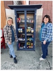 Universal Shield also plans to contribute to help with the needs of the less fortunate in the community by donating to the food pantry closet located outside the company’s office at the side of the building. (Pictured: Missy Shook, Office Manager / Executive Assistant and Royel Jones, Assistant Underwriter, both Morrow County residents, who led the first stocking of the food pantry)