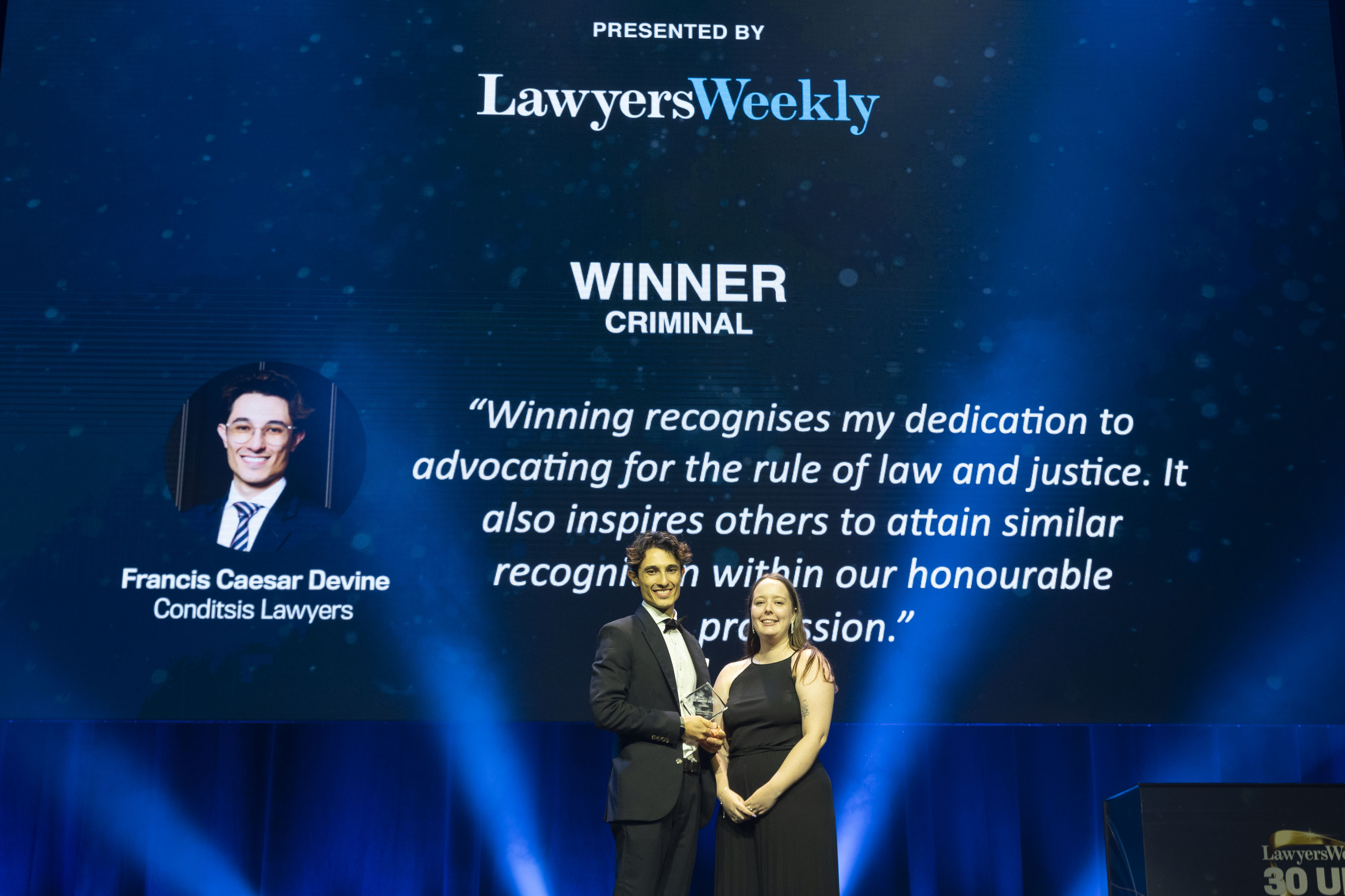 Conditsis Lawyers congratulates Mr Devine on his well-deserved achievement and looks forward to his continued success in the legal field. He is the second member of the Conditsis criminal law under 30’s team to win the prestigious award, with Ms Alex Bailey having been awarded the honour in 2021.