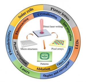 In a review paper (https://doi.org/10.37188/lam.2024.004) published in Light Advanced & Manufacturing, a team of scientists, led by Professor Zhixing Gan from Center for Future Optoelectronic Functional Materials, Nanjing Normal University, China, and co-workers have summarized recent research progress of DLW on perovskites. The concrete interaction mechanisms between laser and perovskite are categorized into six parts, including laser ablation, laser induced crystallization, laser induced ion migration, laser induced phase segregation, laser induced photoreaction, and other laser induced transitions. Then, they focus on the applications of these perovskites with micro/nano patterns and array structures, such as display, optical information encryption, solar cells, LEDs, laser, photodetectors, and planar lenses. The advantages of the patterned structures are highlighted. Finally, current challenges for DLW on perovskites are outlooked and perspectives on their future developments are also put forward.