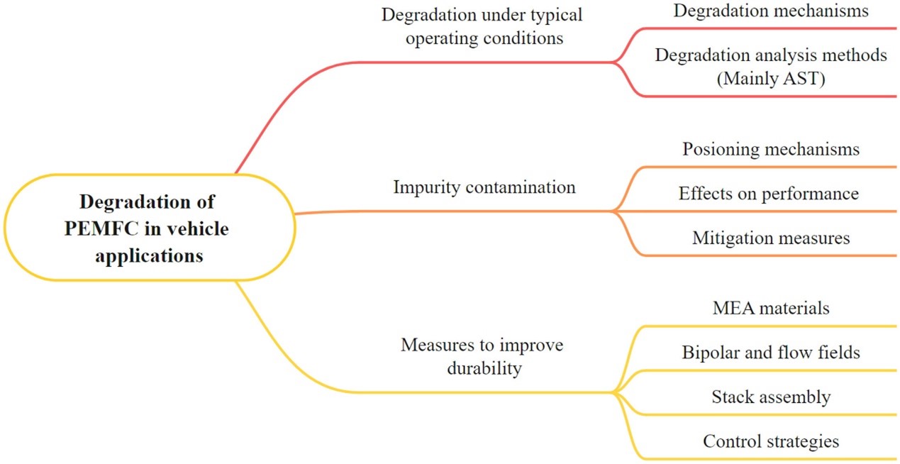 The research team conducted an in-depth examination of the obstacles PEMFCs face, ranging from the chemical breakdown of membranes due to harsh reactions and the corrosion of carbon supports crucial for maintaining cell integrity, to the mechanical wear and tear resulting from variable operational demands. Additionally, the study highlighted how impurities, often neglected, infiltrate the system and further accelerate degradation, thereby obstructing the development of durable PEMFCs. By directly confronting these issues, the research introduces pioneering approaches, including the application of accelerated stress testing (AST) methods. These methods effectively mimic the severe conditions encountered by PEMFCs in actual automotive applications, offering a comprehensive analysis of various degradation mechanisms such as chemical, mechanical, and impurity-induced deteriorations. Suggestions on the durability improvement are also provided from multiple aspects.