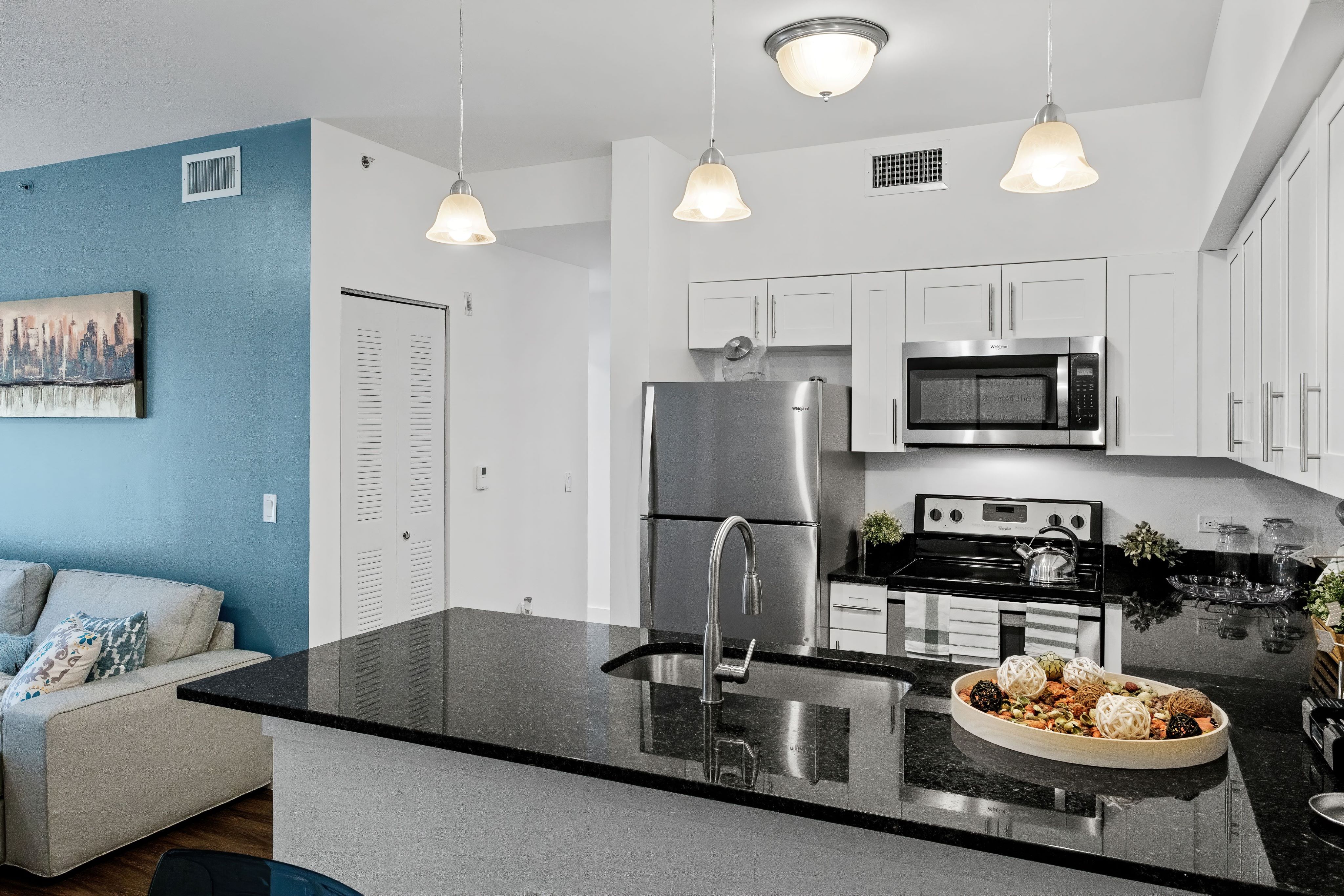 Built in 2016, this modern community offers one, two, and three-bedroom floor plans ranging from 700 to 1,200 square feet. All floor plans include contemporary interior finishes, quartz countertops, and modern lighting and plumbing fixtures. Select units also feature kitchen islands, laminate kitchen flooring, stainless steel refrigerators and microwaves, and spacious balconies. The community offers a 24-hour onsite fitness center, swimming pool, multi-purpose clubhouse, playground, and resident lounge area. 24-hour emergency maintenance and wi-fi hotspots are also available for residents.