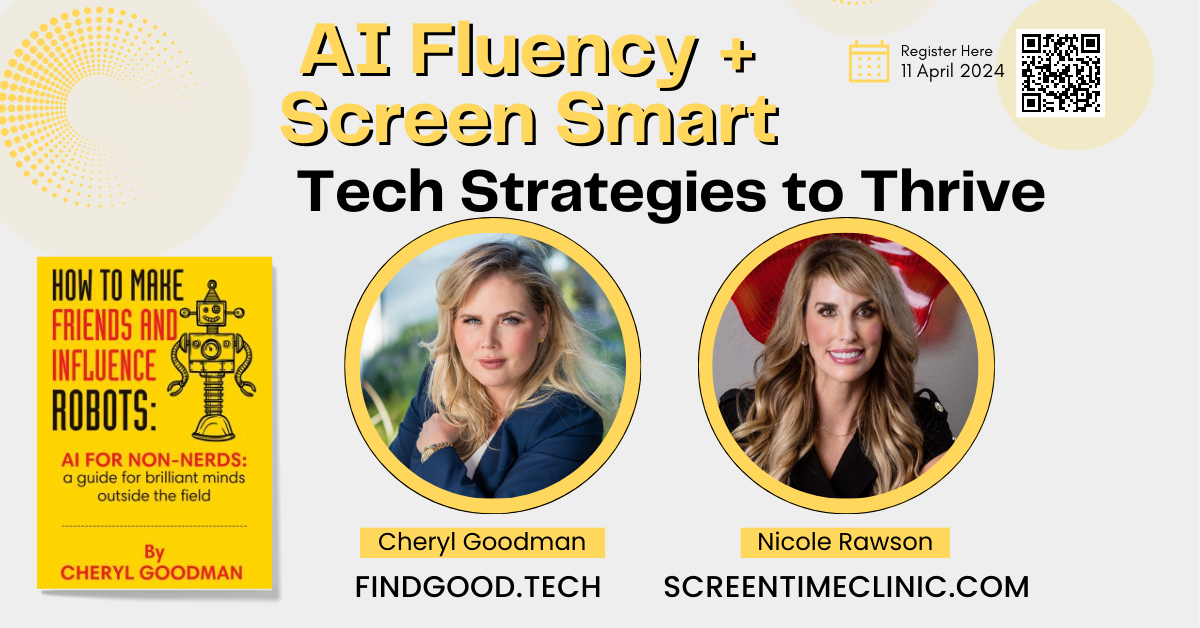 SAN DIEGO, CA, UNITED STATES, April 2, 2024 /EINPresswire.com/ -- In an era where artificial intelligence (AI) is reshaping the workforce and digital consumption is at an all-time high, two seasoned executives are set to lead a one-of-a-kind course on AI and digital wellness. The exclusive event, a collaboration between FindGood.Tech and Screen Time Clinic®, aims to equip leaders with a power seminar of the latest research, tools, and best practices to become AI- fluent while helping balance digital media consumption. Register at https://lu.ma/thrivewithtech