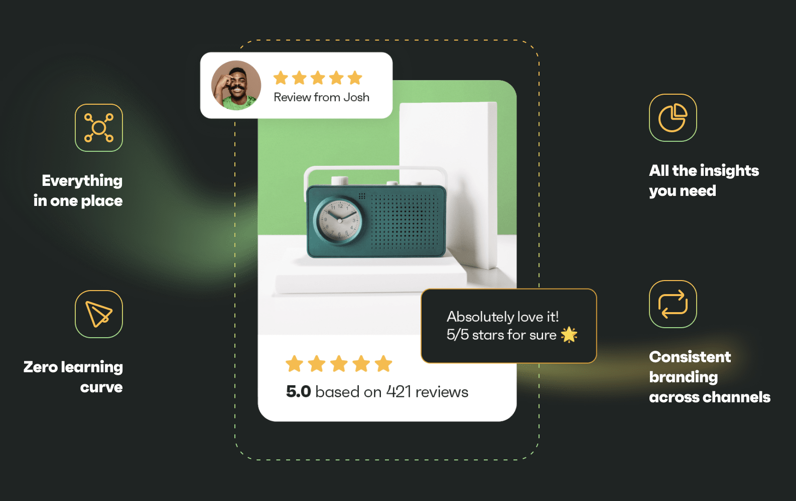 Starting April 23, merchants will be able to collect & highlight product reviews alongside their emails, SMS, and push notifications – all under one platform