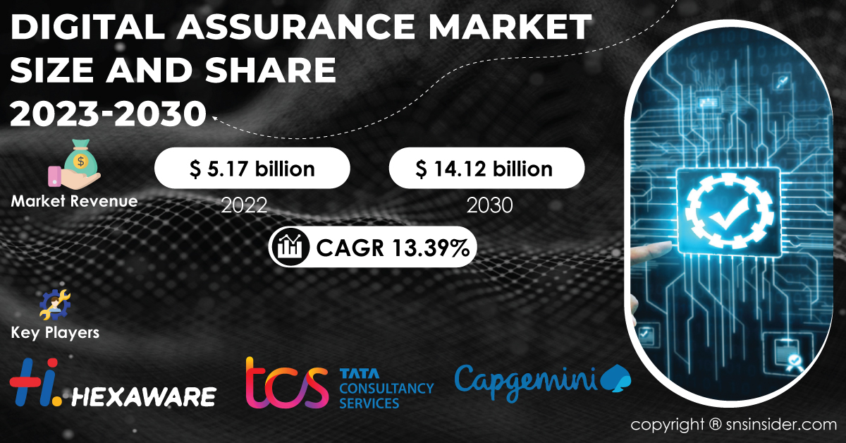 The Digital Assurance Market size was valued at USD 5.17 Bn in 2022 and is expected to reach USD 14.12 Bn by 2030, and grow at a CAGR of 13.39% over the forecast period 2023-2030.