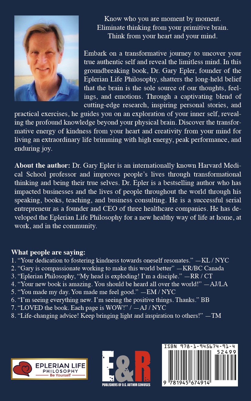 Embark on a transformative journey to uncover your true authentic self and reveal the limitless mind. In this groundbreaking book, Dr. Gary Epler, founder of the Eplerian Life Philosophy, shatters the long-held belief that the brain is the sole source of our thoughts, feelings, and emotions. Through a captivating blend of cutting-edge research, inspiring personal stories, and practical exercises, he guides you on an exploration of your inner self, revealing the profound knowledge beyond your physical brain. Discover the transformative energy of kindness from your heart and creativity from your mind for living an extraordinary life brimming with high energy, peak performance, and enduring joy.
