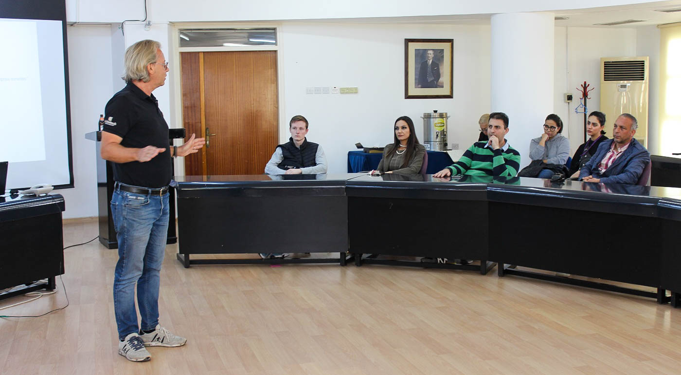 A seminar titled “Efficient Management” was organized by the Eastern Mediterranean University (EMU), Business and Economics Faculty, Business Department. Moderated by EMU Business Department Vice Chair Assist. Prof. Dr. Doğan Ünlücan, the event took place at Business and Economics Faculty where German Businessman Werner Dinkelaker delivered a presentation. The seminar was attended by EMU Business and Economics Department Vice Chair Assoc. Prof. Dr. Burak Erkut, Business and Economics Department academic staff members and students.