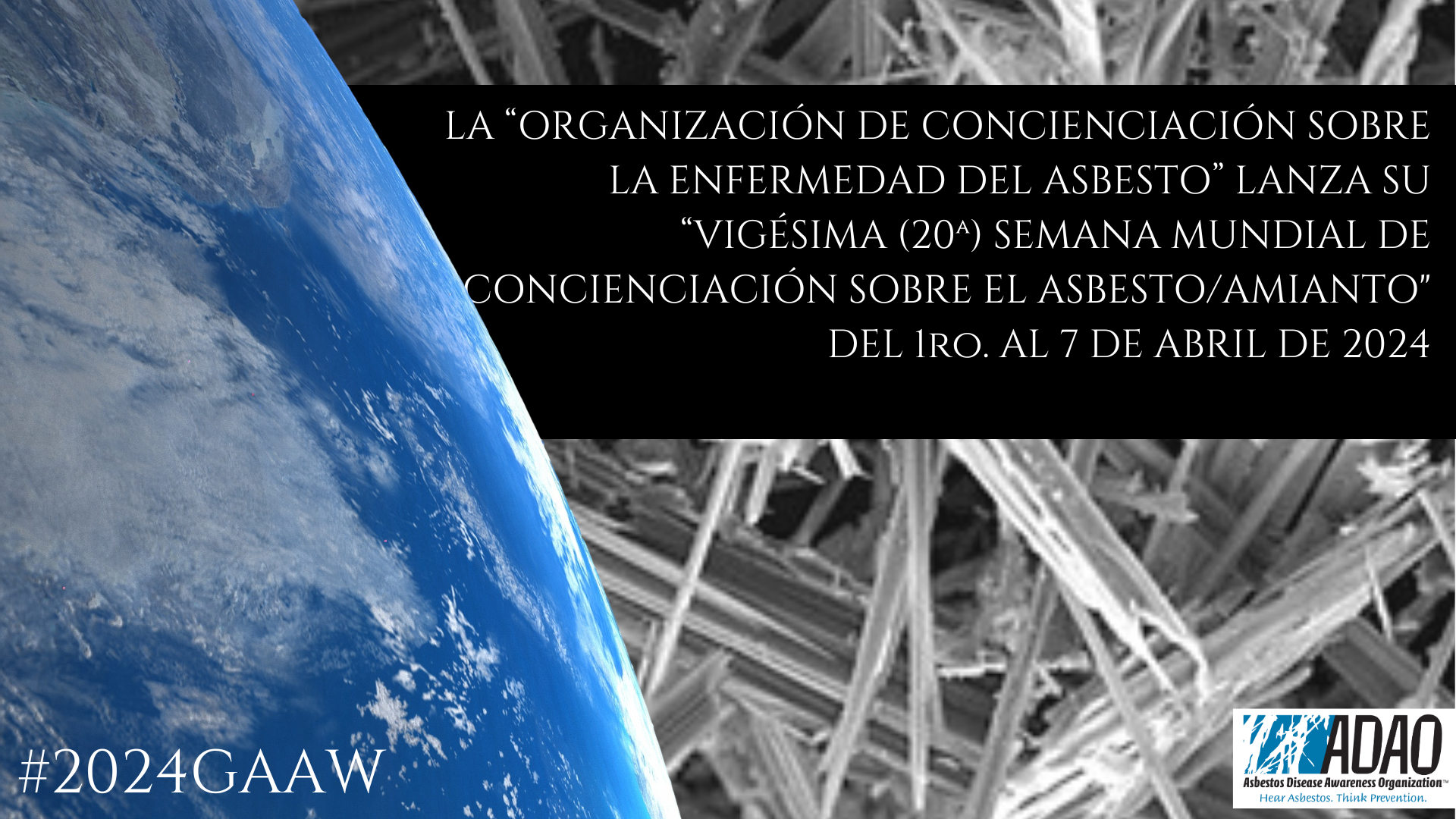 ADAO LANZA SU “VIGÉSIMA (20ª) SEMANA MUNDIAL DE CONCIENCIACIÓN SOBRE EL ASBESTO/AMIANTO" DEL 1ro. AL 7 DE ABRIL DE 2024