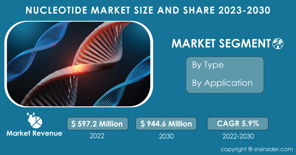 AUSTIN, TEXAS, UNITED STATES, April 2, 2024 /EINPresswire.com/ -- The global nucleotide market has witnessed substantial growth over the past few years and is expected to continue its upward trajectory into the foreseeable future. According to a recent report by SNS Insider, the nucleotide market size was estimated to be USD 597.2 million in 2022. Furthermore, it is projected to reach USD 944.6 million by 2030, exhibiting a compound annual growth rate (CAGR) of 5.9% during the forecast period of 2023-2030. This remarkable growth can be attributed to several key factors, including increasing demand from various end-user industries, technological advancements, and growing awareness about the nutritional benefits of nucleotides.Nucleotides are organic molecules that serve as the building blocks of nucleic acids, such as DNA and RNA. These molecules play a crucial role in various biological processes, including cell signaling, metabolism, and gene expression. In addition to their biological significance, nucleotides have found widespread applications across diverse industries, including food and beverages, pharmaceuticals, animal feed, and others.