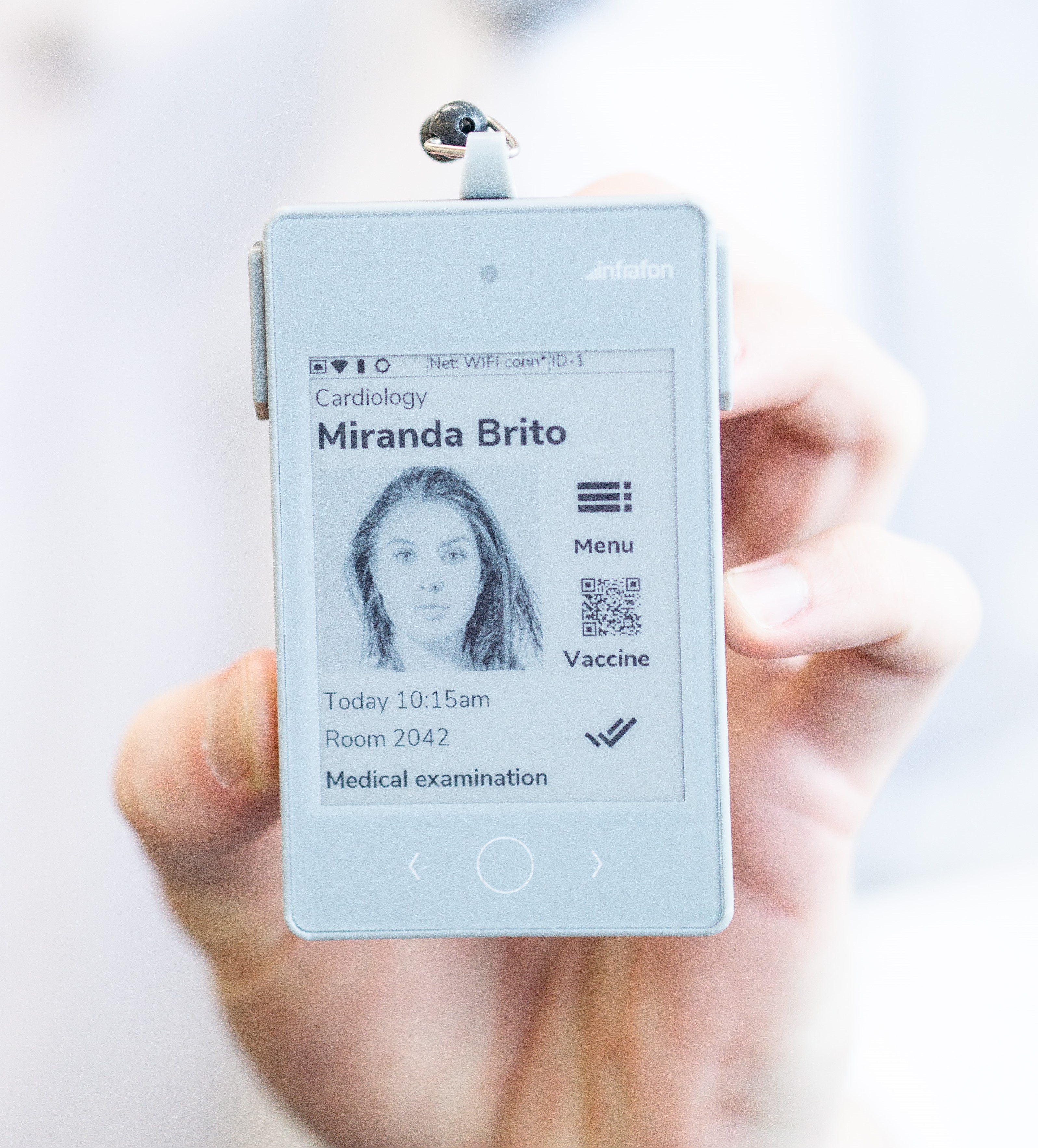FREIBURG, BADEN, GERMANY, April 2, 2024 /EINPresswire.com/ -- After 3 years of ambitious development, Infrafon team is proud to present world´s first interactive security SmartBadge featuring high resolution touch enabled epaper and unparalleled radio communication features.Infrafon GmbH is a startup in Germany, founded by serial entrepreneurs and IT veterans Frieder Hansen and Brian Wyld. Both successfully exited successfully multiple times, once as IPO. They met in 2019 and decided to build a new class of interactive wearable device for a better work management. Infrafon was then founded in 2021 and has now started to sell their Smart Badges and Work Devices in first pilot projects in Europe.