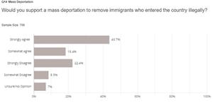 - 85.8% of Republicans and 33% of Democrats agree with a mass deportation.