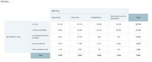 - 91.9% of Independents believe there are problems with the border. 53.8% believe the border is a crisis, 24.1% believe it's a serious problem and 14% believe it's a somewhat serious problem.