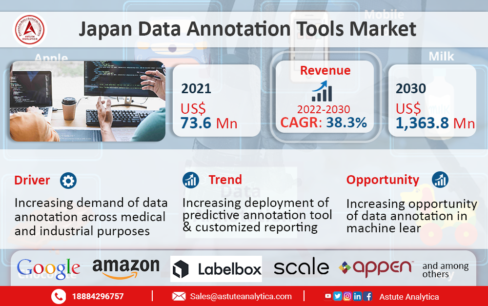 Japan Data Annotation Tools Market is estimated to make a major leap forward in its revenue from US$ 73.6 Mn in 2021
