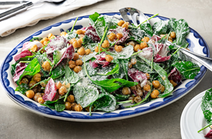 - Crispy Chickpea Kale Salad: Crispy chickpeas and radicchio tossed with baby kale in a parmesan ranch dressing