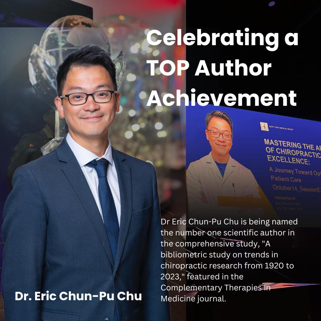 HONG KONG, CHINA, April 8, 2024 /EINPresswire.com/ -- The Chiropractic Doctors Association of Hong Kong (CDAHK) is proud to announce that Dr. Eric Chun-Pu Chu has been recognized as the leading researcher in the global chiropractic community, as detailed in the landmark study "A bibliometric study on trends in chiropractic research from 1920 to 2023," recently published in Complementary Therapies in Medicine.