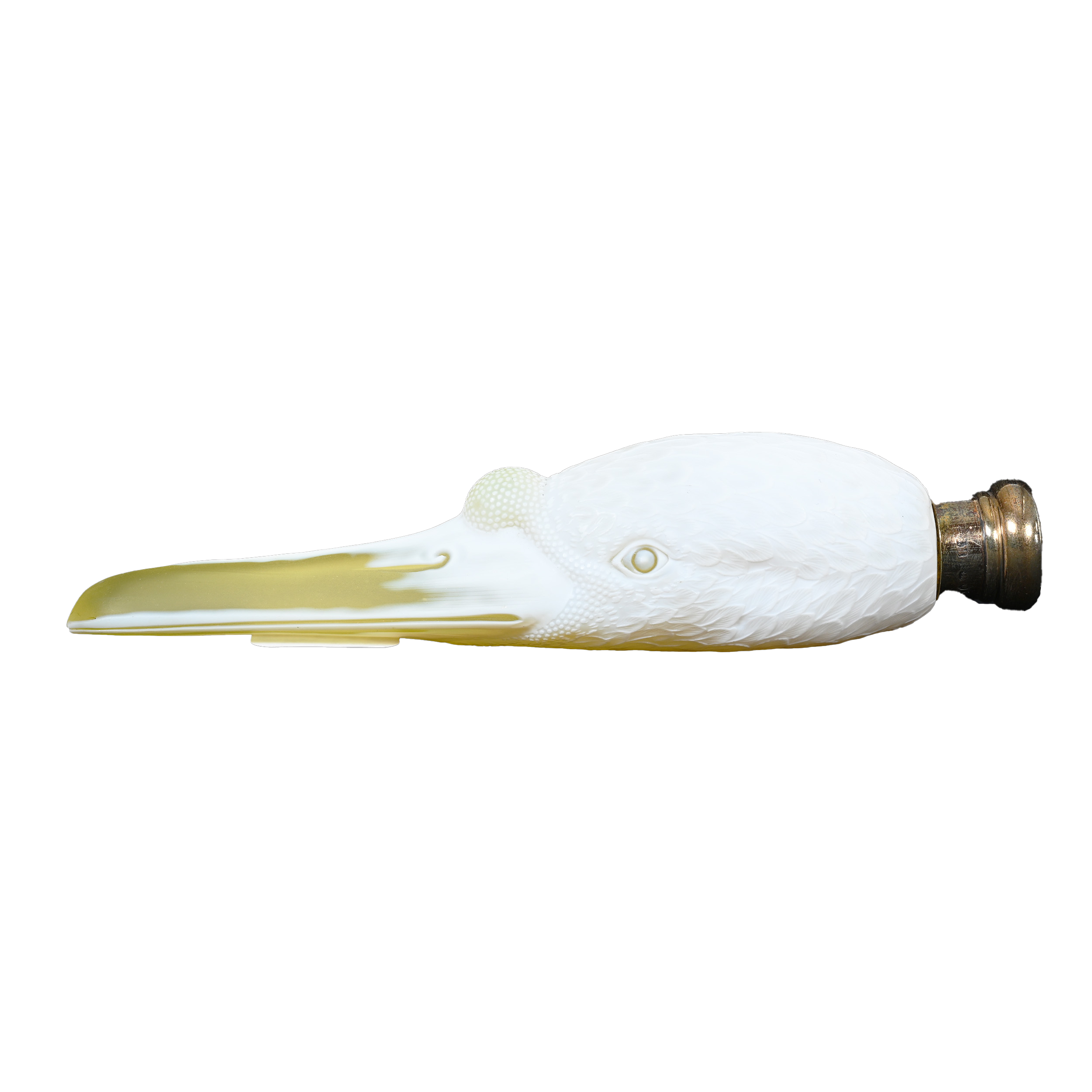 Lot 27 is an English cameo art glass lay down perfume by Thomas Webb & Son, 5 ¾ inches by 1 inch, with an amazing swan head cameo carved design, white over citrine yellow, English silver marked with number “RD11109” on the twist cap (est. $1,500-$3,000). This item is also from the collection of Frank and Melissa Keathley, who previously operated Top Shelf Antiques in Texas.