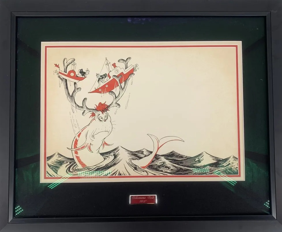 Lots 0111, 0112, 0114, and 0115 are collectible pieces by Dr. Seuss, values upwards of $14,000.