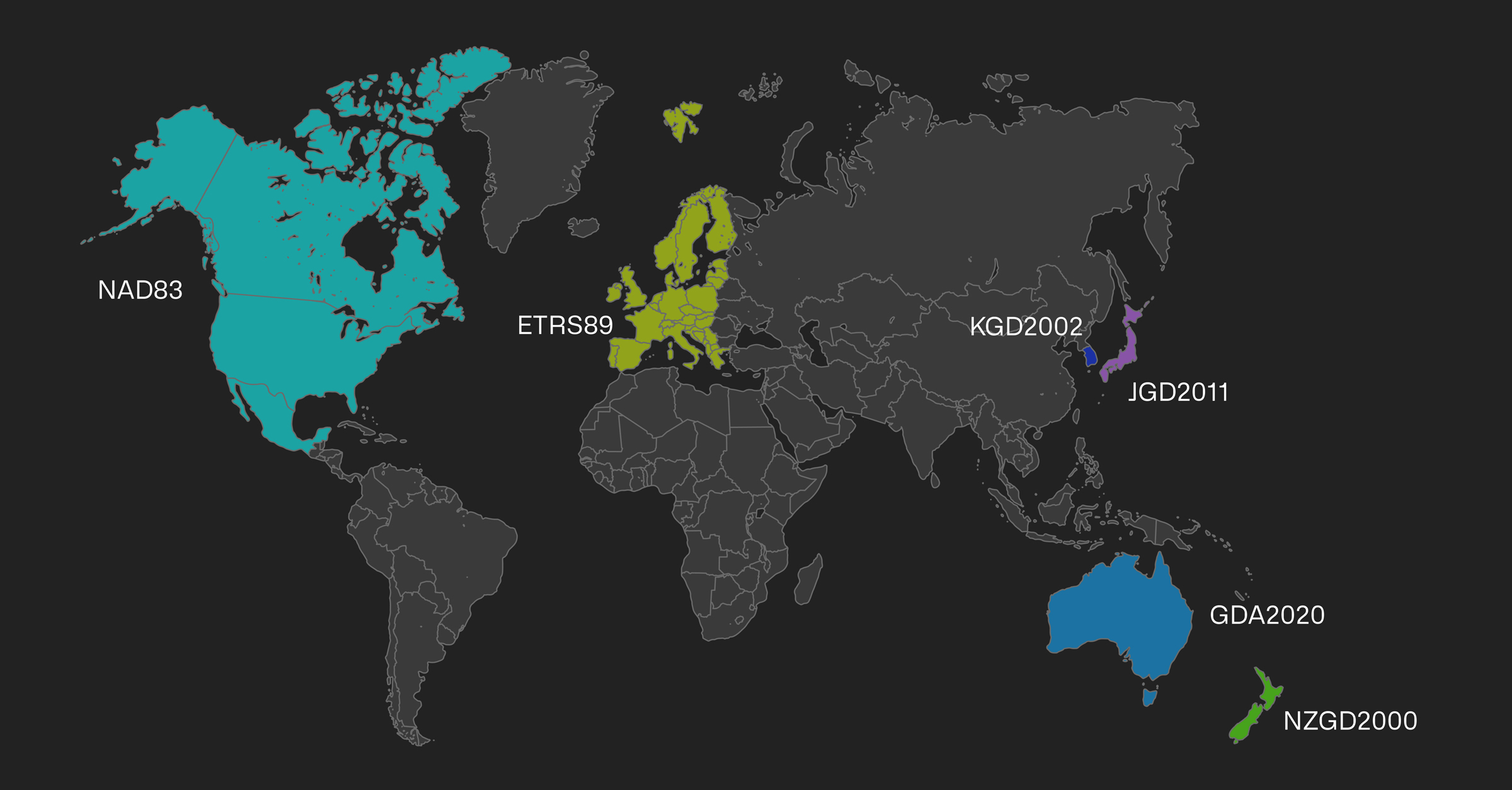 ● Support and automatic assignment of either ITRF2014 or local datums (including NAD83, ETRS89, NZGD2000, GDA2020, JGD2011, and KGD2002)