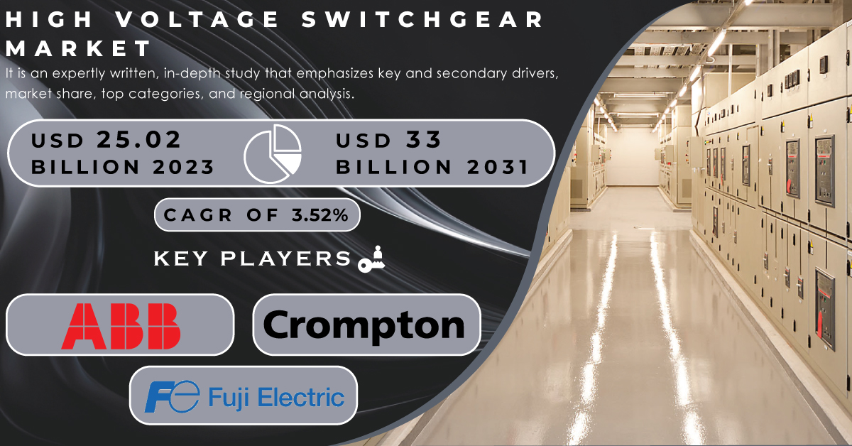 AUSTIN, TEXAS, UNITED STATES, April 15, 2024 /EINPresswire.com/ -- Market Size & Report scopeThe SNS Insider report estimates the High Voltage Switchgear Market to have reached a value of USD 25.02 Billion in 2023. The market is projected to reach USD 33 Billion by 2031, reflecting a steady Compound Annual Growth Rate (CAGR) of 3.52% during the forecast period 2024-2031.