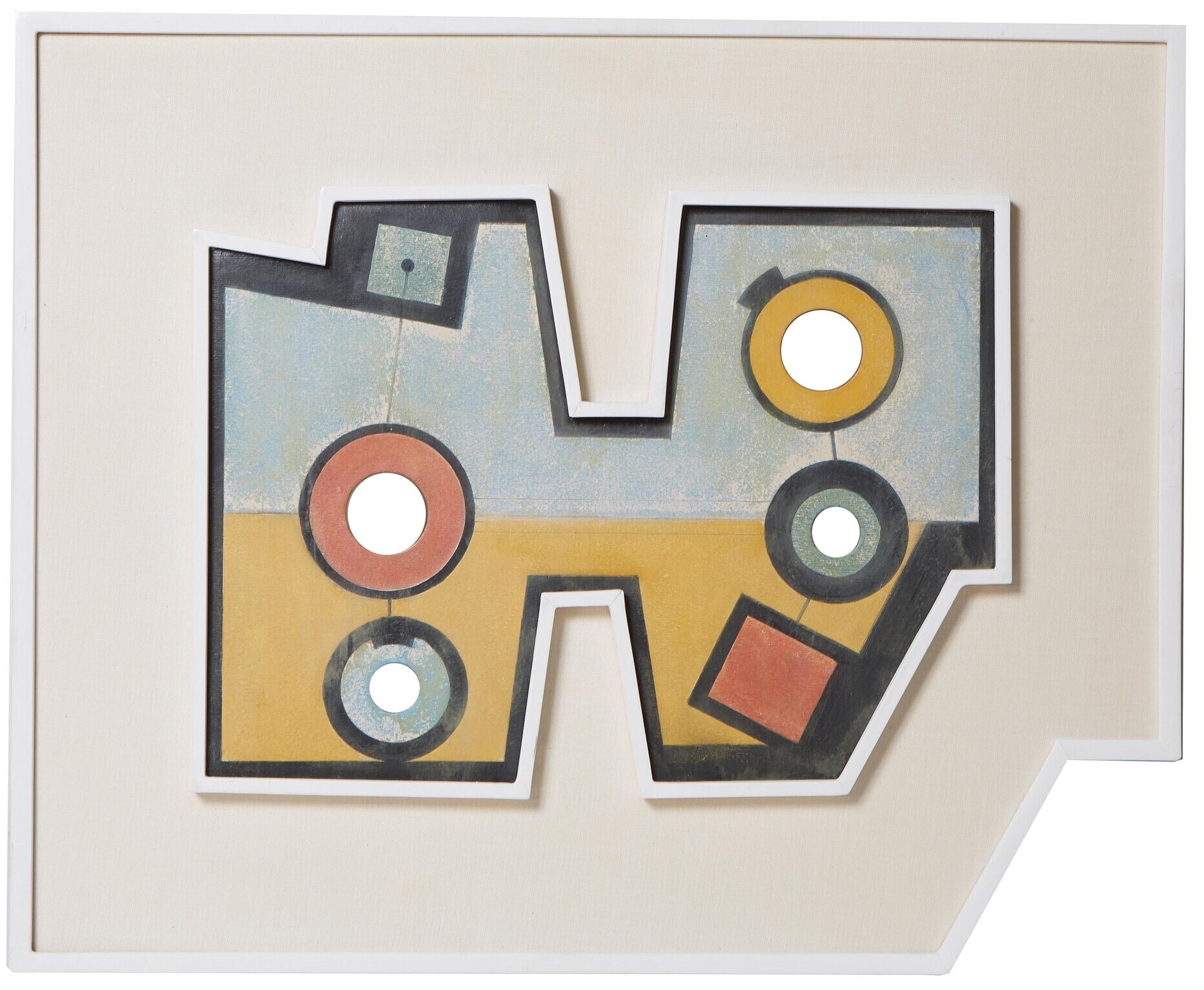 An oil and mixed media on shaped board by Carmelo Arden Quin (Uruguayan/Paris, 1913-2010) titled Couronnes IV (1948) has an estimate of $8,000-$12,000. The work is titled and dated en verso and presented in a white board frame measuring 18 ¼ inches by 22 ½ inches. It was acquired in 1994 from the Galerie Alexandre de la Salle and is in the artist’s catalogue raisonné.