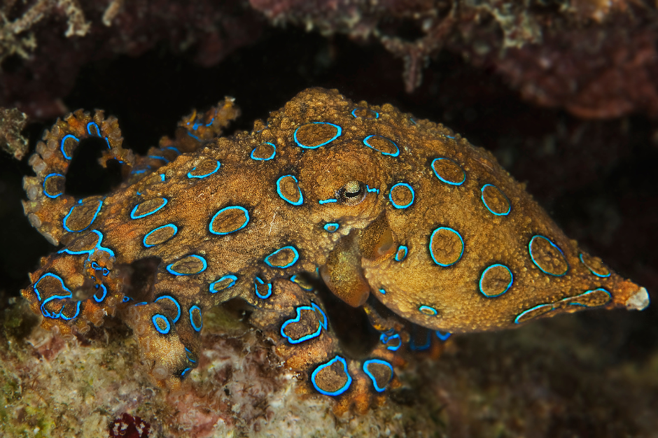 Blue-ringed octopuses are highly venomous, with sufficient toxin to paralyse and kill an adult within minutes, and there is currently no anti-venom available. Additionally, cone snails, found in subtropical and tropical waters, possess venom potent enough to be fatal to humans.