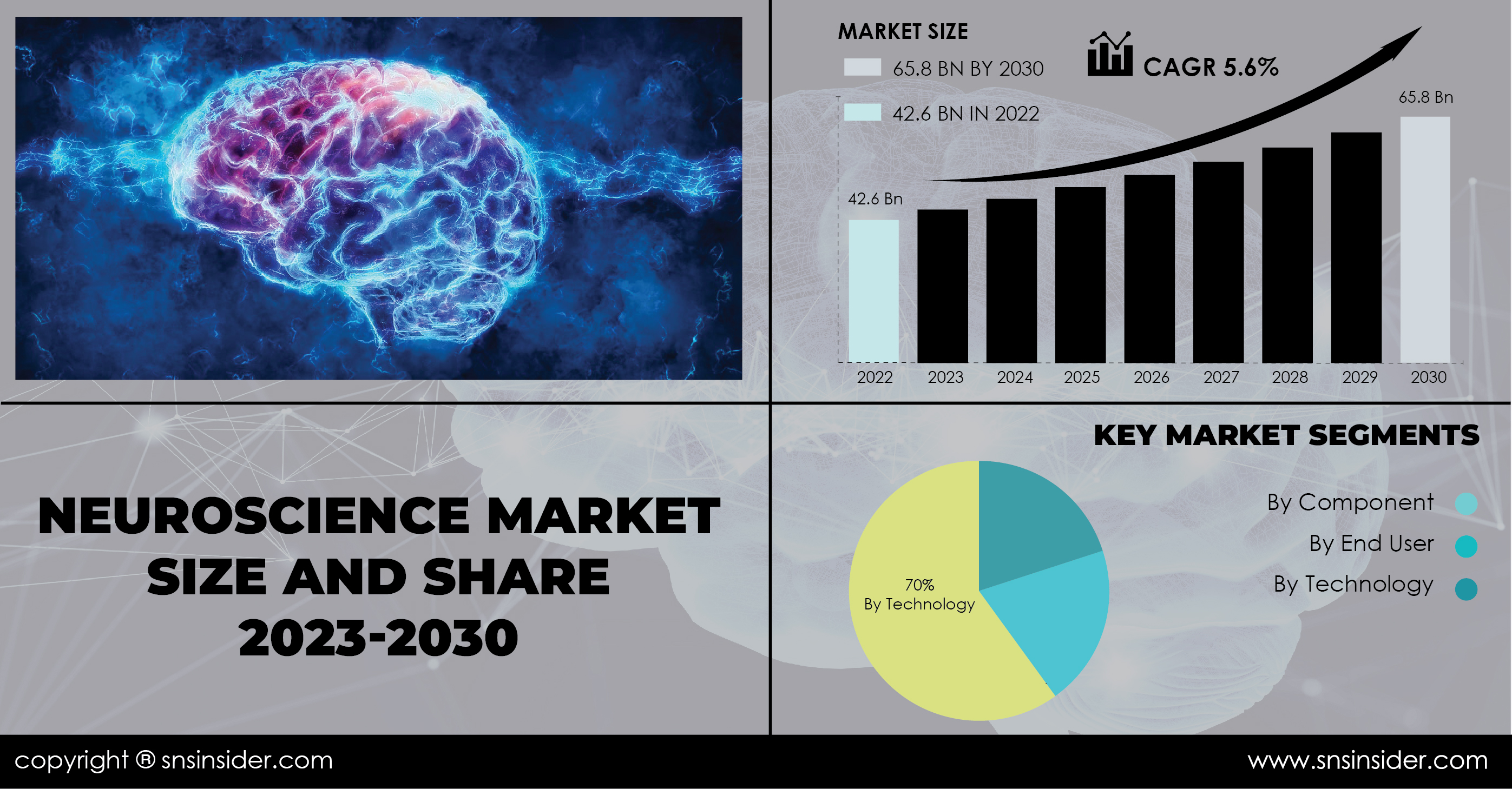 AUSTIN, TEXAS, UNITED STATES, April 18, 2024 /EINPresswire.com/ -- The global Neuroscience Market has been experiencing significant growth, driven by advancements in technology, increasing research activities, and rising prevalence of neurological disorders. According to a recent report, the market size was estimated at USD 42.6 billion in 2022 and is anticipated to reach USD 65.8 billion by 2030, with a compound annual growth rate (CAGR) of 5.6% during the forecast period from 2023 to 2030.Report Scope and Overview: