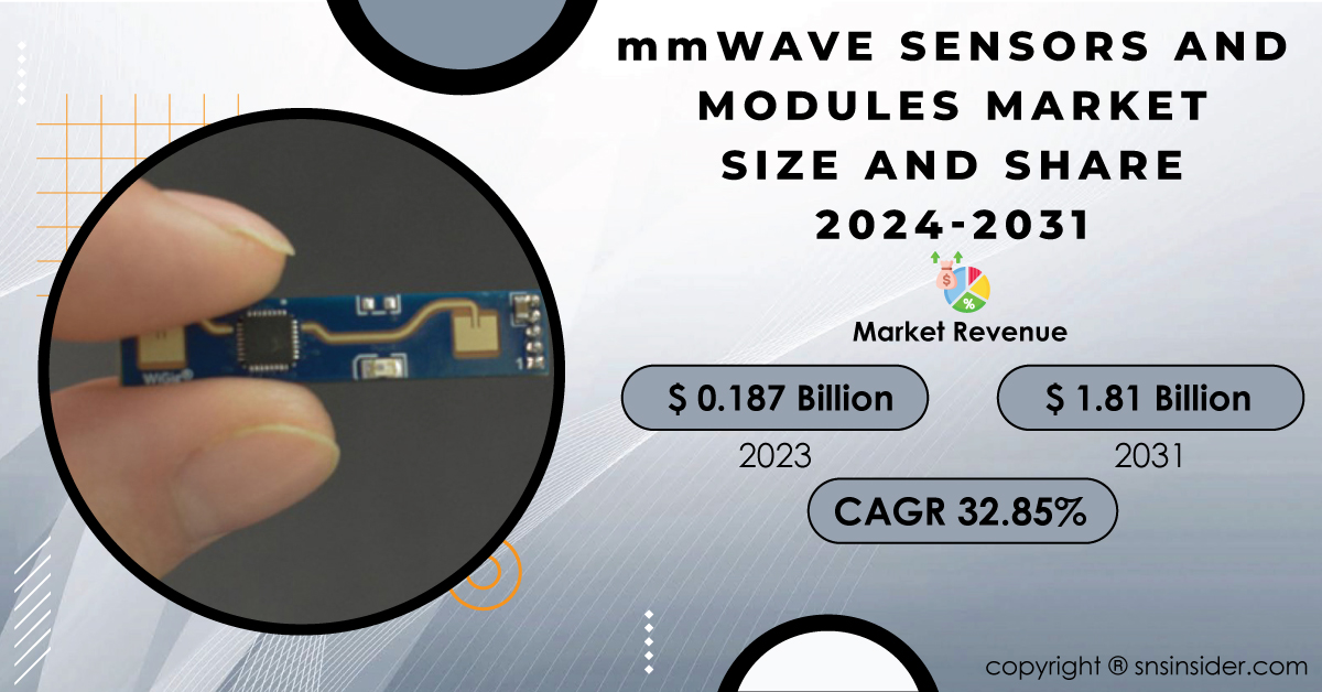 AUSTIN, TEXAS, UNITED STATES, April 19, 2024 /EINPresswire.com/ -- Market Size & Report Scope:The SNS Insider report underscores the meteoric rise of the MmWave Sensors and Modules Market, starting from a valuation of USD 0.187 Billion in 2023 and projected to escalate to USD 1.81 Billion by 2031, boasting a staggering CAGR of 32.85 % over the forecast period from 2024 to 2031.