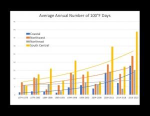 AUSTIN, TEXAS, USA, April 22, 2024 /EINPresswire.com/ -- The latest edition of “Future Trends of Extreme Weather in Texas” reveals a concerning acceleration in extreme weather conditions across the state. Produced by the Texas State Climatologist at Texas A&M University, Dr. John Nielsen-Gammon, in collaboration with Texas 2036, this study details significant increases in 100-degree days, intensifying droughts and heightened urban flooding events.