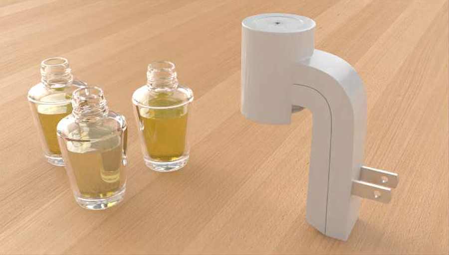 Ken G. of Mount Pearl, NL is the creator of the AIRMARI, a plug in device that diffuses CBD oil and other similar products into the air. Users can plug the device into an electrical outlet to warm the oil and release it into the air as a vapor. The device is comprised of a glass bottle filled with CBD oil featuring ventilation holes. The oil is dispersed as a vapor by a fan and heat source that draws power from an electrical outlet.