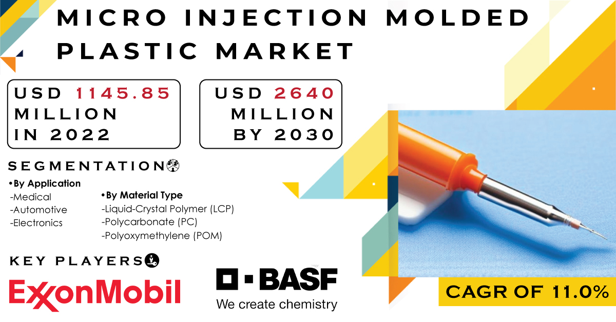 TEXES, AUSTIN, UNITED STATES, April 24, 2024 /EINPresswire.com/ -- Growing growth in the automotive sector driving demand for micro injection-molded plastic, increasing demand from medical applications, and growing healthcare expenditure are the major drivers for the micro injection-molded plastic market.The SNS Insider report indicates that the Micro Injection Molded Plastic Market Size was valued at USD 1145.85 million in 2022 and is expected to reach USD 2640 million by 2030, growing at a CAGR of 11.0% over the forecast period 2023-2030. The micro injection molded plastic market is experiencing significant growth, driven by the increasing demand for miniaturized and precision-engineered components in various industries such as electronics, medical devices, automotive, and consumer goods. Micro injection molding is a specialized manufacturing process that enables the production of small, intricate plastic parts with high precision and repeatability. With the trend towards miniaturization, lightweighting, and functional integration in product design, the demand for micro injection molded plastic components is on the rise, fueling the expansion of the global micro injection molded plastic market.