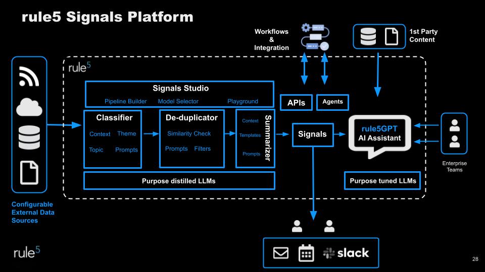 “The rule5 Signals Platform (RSP) revolutionizes how information is transformed into actionable signals and insights using generative AI. This platform makes decision-making simpler and more effective for our customers." said Ramana Mulpury, Co-founder & CTO at rule5 AI Inc.