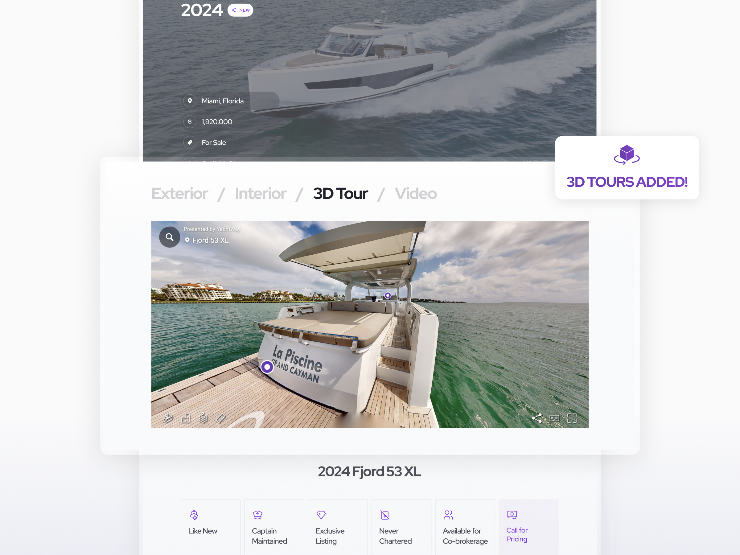 MIAMI, FLORIDA, UNITED STATES OF AMERICA, April 30, 2024 /EINPresswire.com/ -- YachtWay.com, the premier online marketplace that connects Shipyards, Dealers, and Yacht Enthusiasts, is excited to announce that innovative 3D tours are now integrated with vessel listings. This cutting-edge feature allows users to virtually explore vessels using computers or VR headsets, similar to property browsing.Since early April 2024, YachtWay users have been able to "walk around" select vessels with a few clicks. These immersive 3D tours are meticulously created by the expert team at YachtWay Studios using advanced technology, setting a new benchmark in yacht marketing and customer engagement.