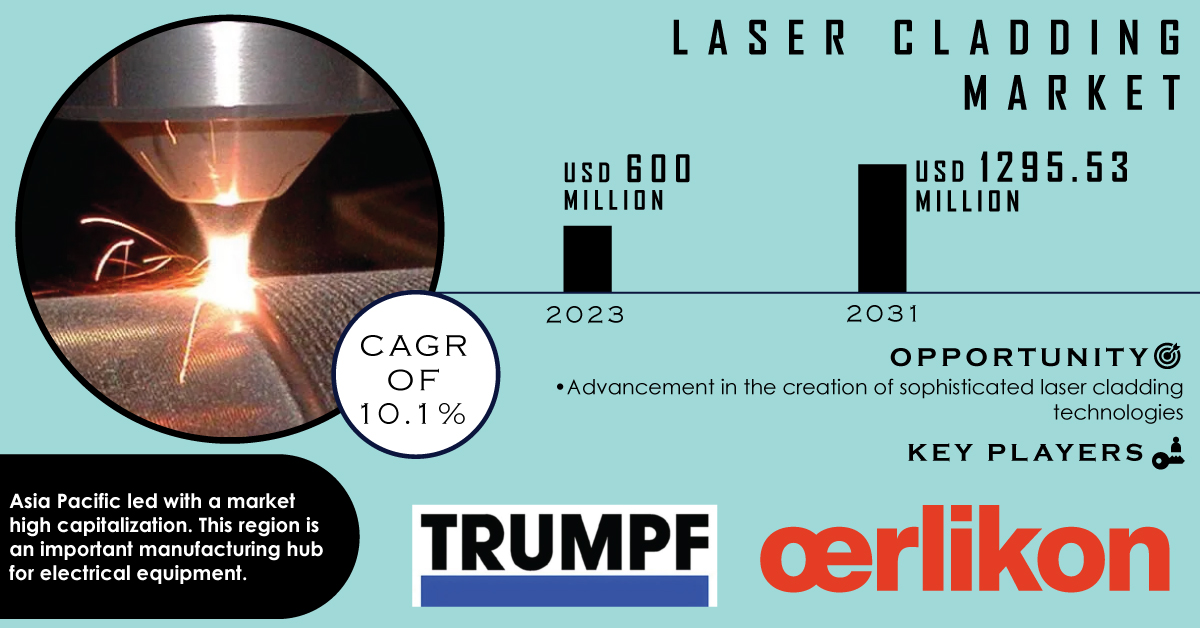 Laser Cladding Market Size is Estimated to Hit USD 1295.53 Million at a CAGR of 10.1% by forecast 2031
