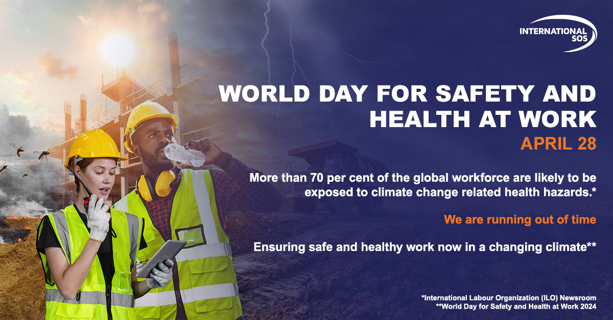 KUALA LUMPUR, MALAYSIA, April 26, 2024 /EINPresswire.com/ -- In light of World Day for Safety and Health at Work on 28 April, International SOS encourages organisations to reassess their occupational safety and health (OSH) programmes. Climate change is intensifying existing OSH challenges, and organisations must prioritise proactive solutions. This year's theme, "Impacts of climate change on occupational safety and health," highlights the urgency of this evolving threat.— Dr Olivier Lo