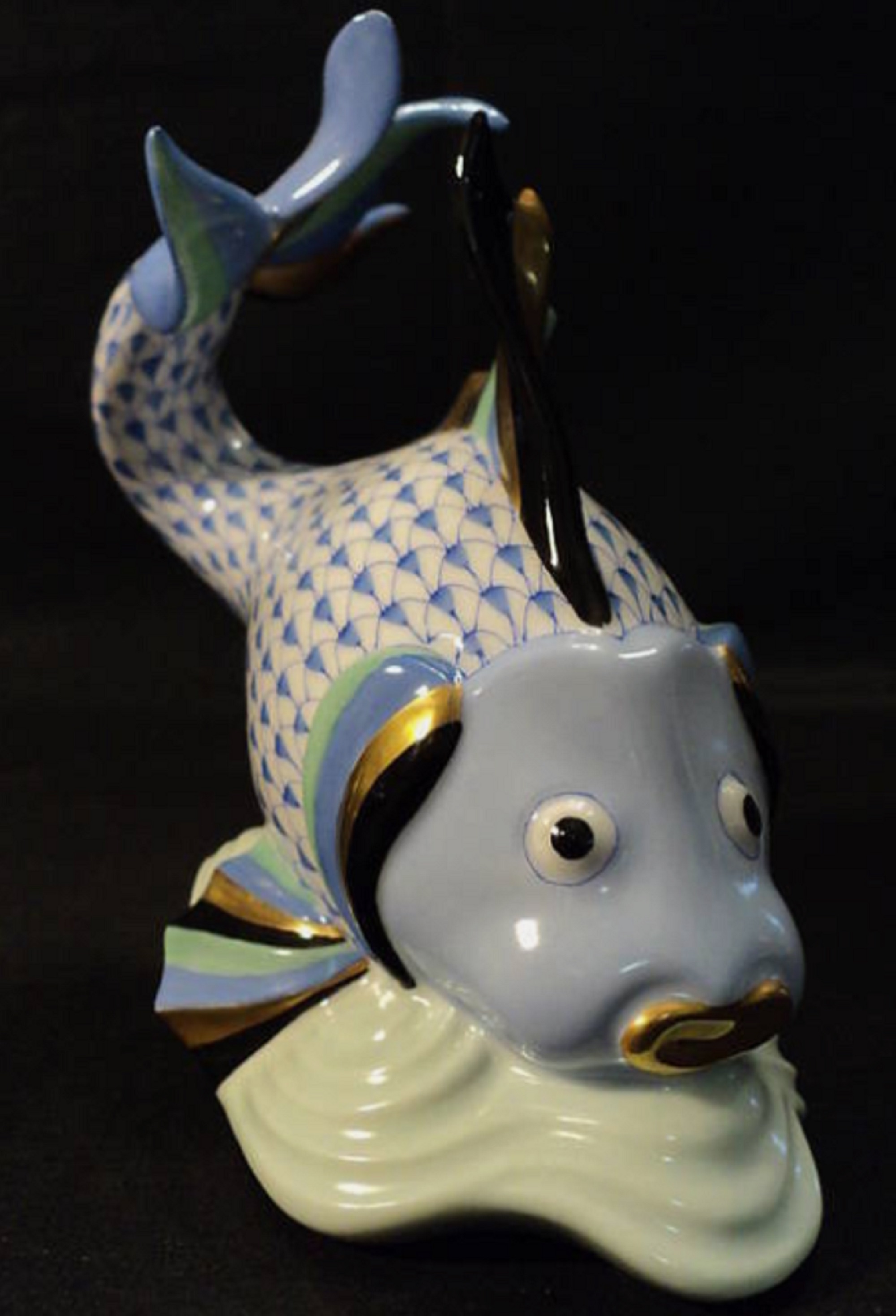 Large, signed Herend porcelain blue fishnet koi carp fish figurine, one of several gorgeous Herend pieces in the auction, 5 ½ inches in height (est. $500-$750).