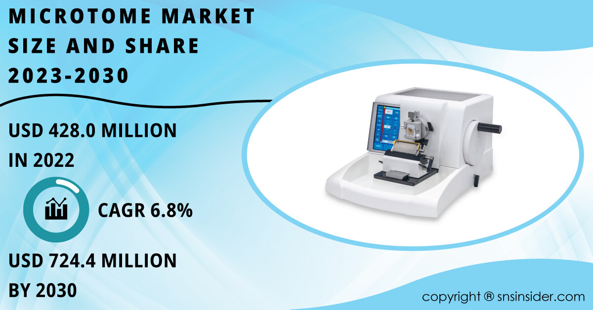 AUSTIN, TEXAS, UNITED STATES, April 29, 2024 /EINPresswire.com/ -- According to recent SNS Insider, the Microtome market size was estimated at USD 428.0 million in 2022. Moreover, it is projected to reach USD 724.4 million by 2030, exhibiting a compound annual growth rate (CAGR) of 6.8% during the forecast period of 2023 to 2030.Report Scope