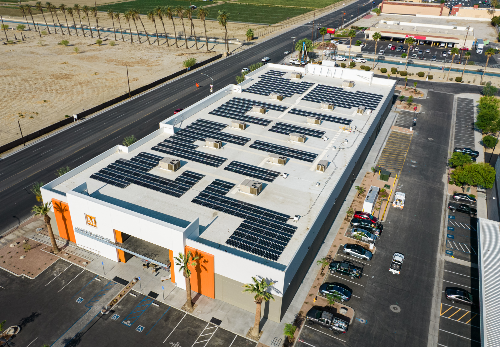Out to the east, HES Renewables recently designed and installed a solar and energy storage system, again incorporating a Tesla Megapack, for the Mathis Bros. Furniture showroom in Indio, California, which is in Riverside County. This system also takes advantage of the added functionality of a microgrid arrangement.